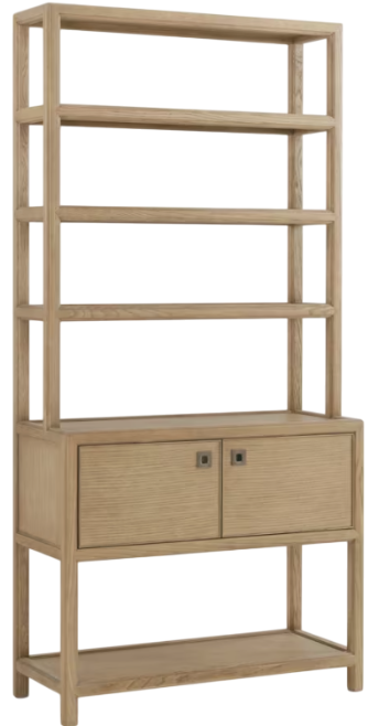 The Montauk jetty etagere by Theodore Alexander features open shelving crafted from warm wood with a sleek, minimalist design. It offers stylish storage and display space, blending natural textures with modern lines to enhance any living area with both function and elegance.Read More