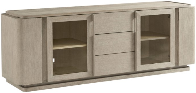 The Repose 80" wide Glass Door Media Console has an amazing amount of storage for all your media. Two glass front cabinets with adjustable shelving, cord cutouts and vents at the back.Read More