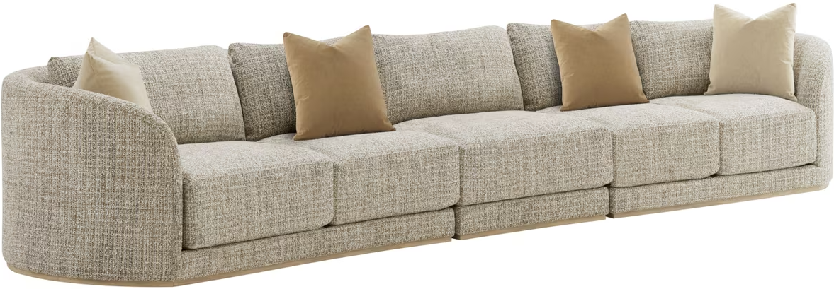 An exposed wood base grounds this inviting three-piece modular sectional offering a balanced blend of comfort and structure. Generous seating and layered textural tones enhance its presence, making it a versatile centerpiece for relaxed, well-composed living spaces.Read More