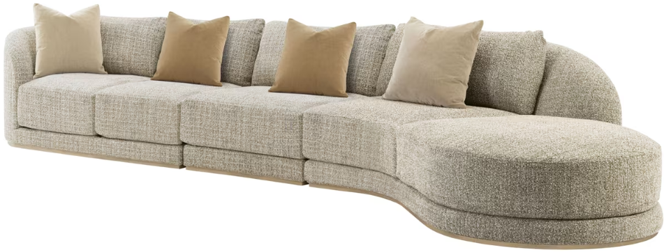 An exposed wood base grounds this inviting three-piece modular sectional and chaise, offering a balanced blend of comfort and structure. Generous seating and layered textural tones enhance its presence, making it a versatile centerpiece for relaxed, well-composed living spaces.Read More