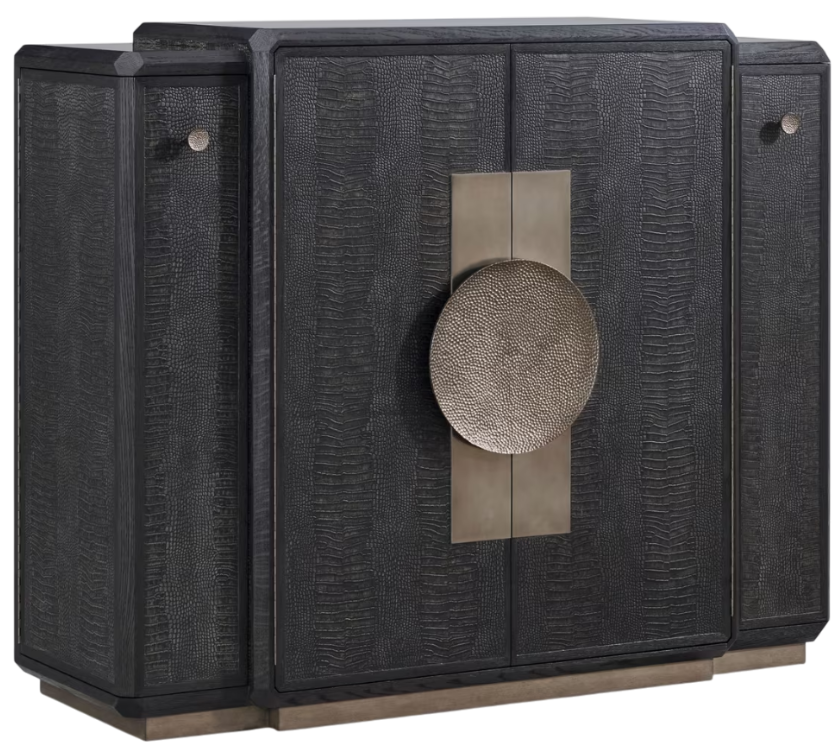 The spencer St. James collection blends contemporary flair with exquisite creativity and detail. Made of oak and adorned with crocodile-embossed leather and hammered metal hardware, spencer St. James creates a textural statement. Available in a light argento or dark onyx finish.Read More