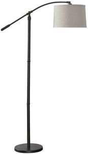 This rich black floor lamp is both functional and decorative. Perfect for providing just the right amount of light, this floor lamp has an adjustable arm, which allows more light to focus on the task, along with an adjustable height mechanism. A slightly tapered oatmeal shade complements the finish.Read More