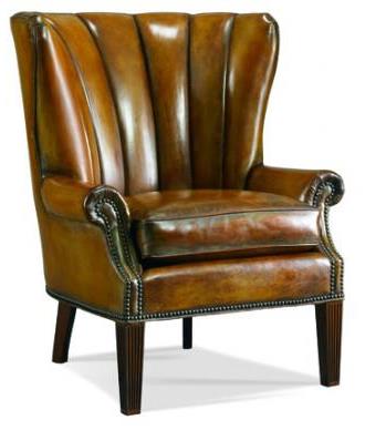 The accent chair is shown in Artisan leather that is hand-wiped creating an antiqued appearance to the leather and nails.