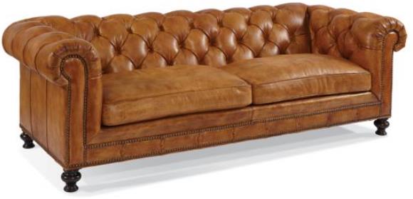 The sofa is shown in leather Sauvage S223 Saddle and Mink finish.