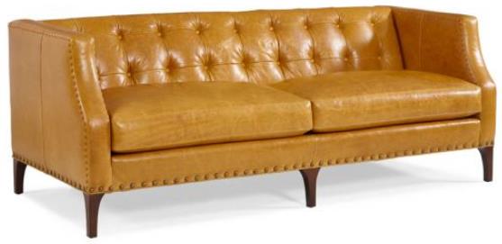 The sofa is shown in leather Gourmet G993 Scotch, with standard #3FN nails and optional finish Carob Brown.
