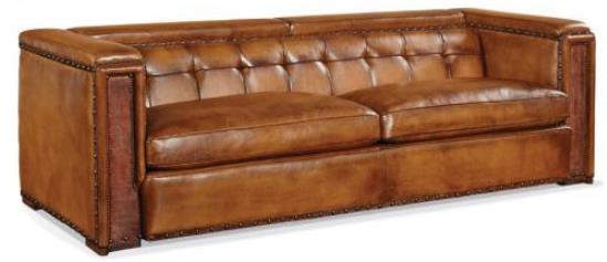 The sofa is shown in leather Sauvage S221 Bark with contrast arm panels in Blade B925 Brown - optional, with nails shown in #1V and #3V.